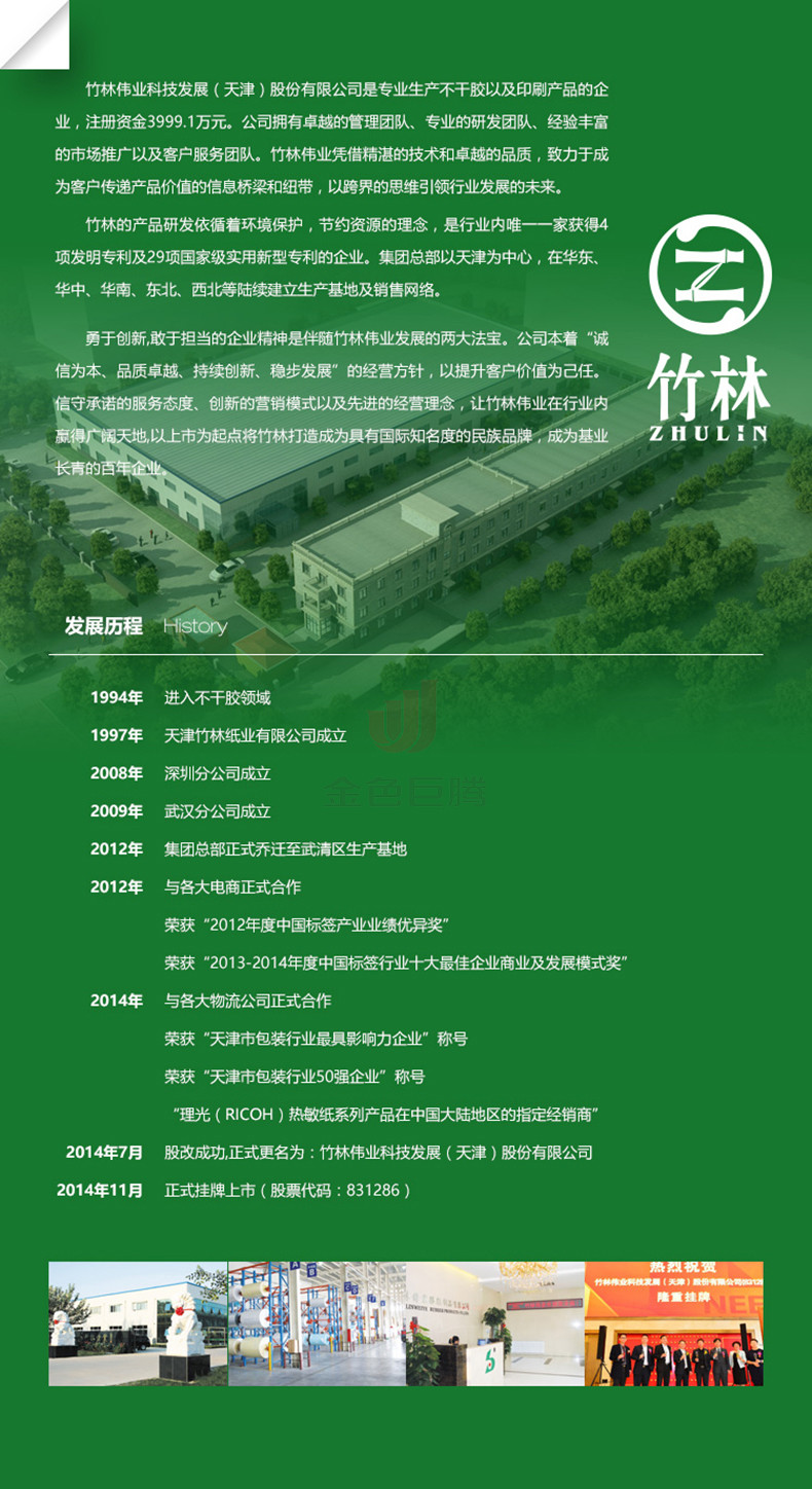 竹林偉業(yè)是天津一家從事不干膠原材料及不干膠印刷品的企業(yè)。